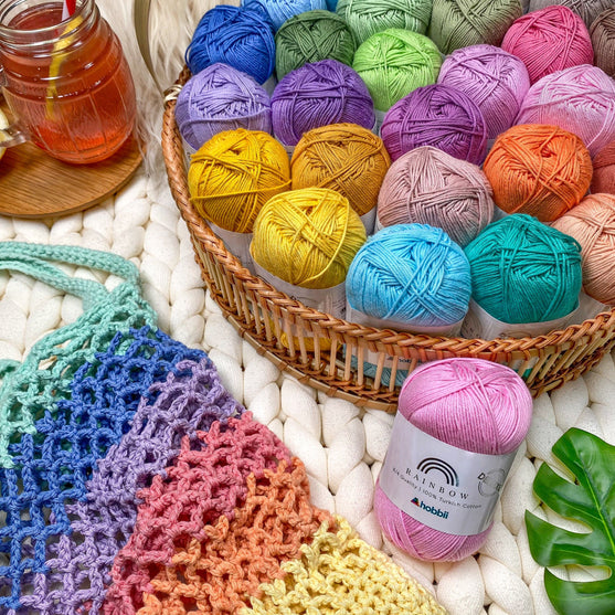 Al igual que nuestros otros hilos en algodón 100%, Rainbow Deluxe se puede lavar a altas temperaturas, aunque si lo lavas a esas temperaturas con frecuencia, los colores se verán más gastados con el tiempo. Por lo tanto, a menos que tejes paños de cocina o toallas, te recomendamos lavar a un máximo de 40°C.