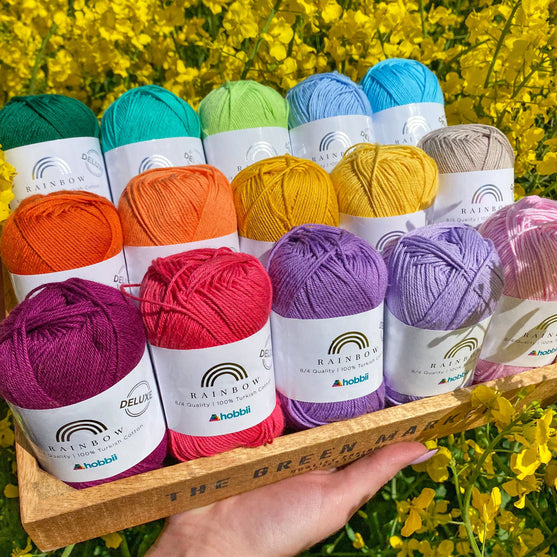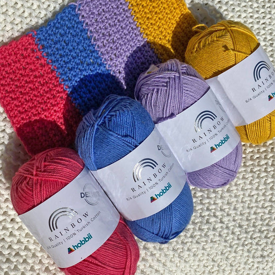 Dale la bienvenida a Rainbow Deluxe; el hilo súper resistente de la familia Rainbow. La versión deluxe consiste en algodón turco 100%, suave, flexible y excepcionalmente duradero.
