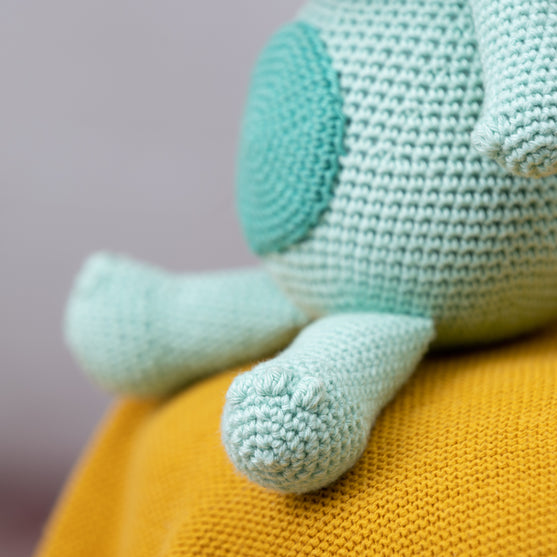 ¿Conoces un pequeño niño o niña a quien le gustaría un amigo al que dar muchos abrazos y mimos? Entonces Dirk el Dragón es perfecto. Es tan mono y cariñoso, y ¡lo que más le hace feliz es dar alegría! Se teje en Friends Cotton 8/4 disponible en una variedad amplia de colores. Así que puedes tejer Dirk el Dragón en los colores que más te gusten.