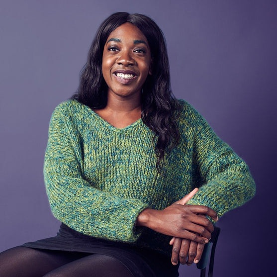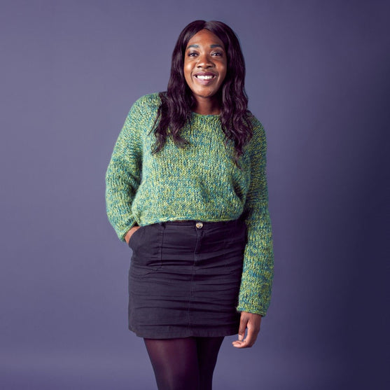 Un maravilloso jersey tejido con cuatro hebras de Diablo. Esta estructura le da un bonito juego de colores a la prenda. Diablo viene en una amplia gama de tonalidades y puedes elegir la combinación de colores que más te guste.