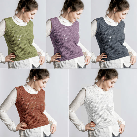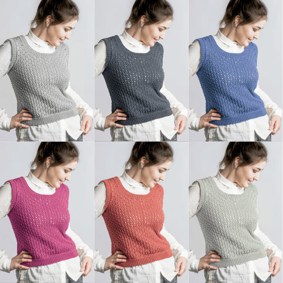 Teje este bonito chaleco estructurado en un patrón hueco con Rainbow Bamboo, un suave y delicado ovillo perfecto para prendas de ropa.