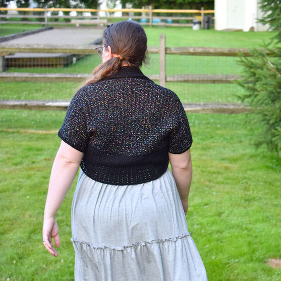 - Primero se trabaja como un rectángulo que se dobla por la mitad y se cose parcialmente en 2 sitios para crear orificios/mangas para los brazos. Luego se trabaja un collar alrededor de la abertura frontal de la pieza.