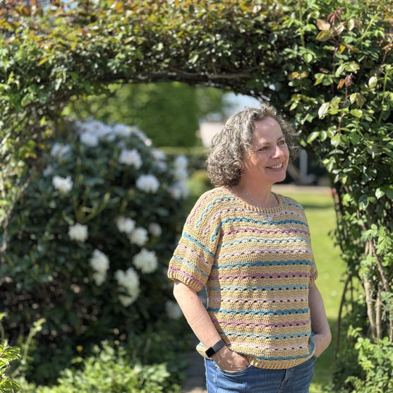 El borde del jersey se teje con un patrón de zigzag que se teje con disminuciones y aumentos para un efecto ondulado.