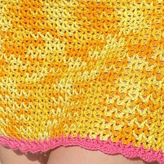 Este diseño único se crea a partir de cuatro piezas triangulares y se une mediante una única vuelta de puntos V, creando una elegante forma de cuello en V. Este patrón te permitirá profundizar la técnica de punto V y dominar la combinación perfecta de vueltas y rondas. Una guía fotográfica garantiza que incluso los principiantes puedan recrear el patrón sin ninguna dificultad. El vestido ofrece una fantástica oportunidad para mejorar tus habilidades de ganchillo a la vez que creas una prenda moderna y llamativa. Descárgalo ahora y embárcate en un delicioso viaje a ganchillo.
