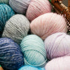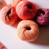 Es una hermosa lana hecha en Italia con una estructura tubular de algodón, en la que se soplan las fibras más suaves de alpaca. Estas fibras de color se asoman suavemente desde el tubo, formando un halo delicado que destaca elegantemente contra la superficie siempre blanca y retorcida. La paleta de colores, cuidadosamente seleccionada por Pom Pom, se inspira en colores desaturados, azulejos vintage y textiles, resultando en una gama que incluye tonos más brillantes, así como otros más neutros.